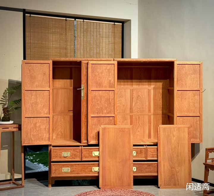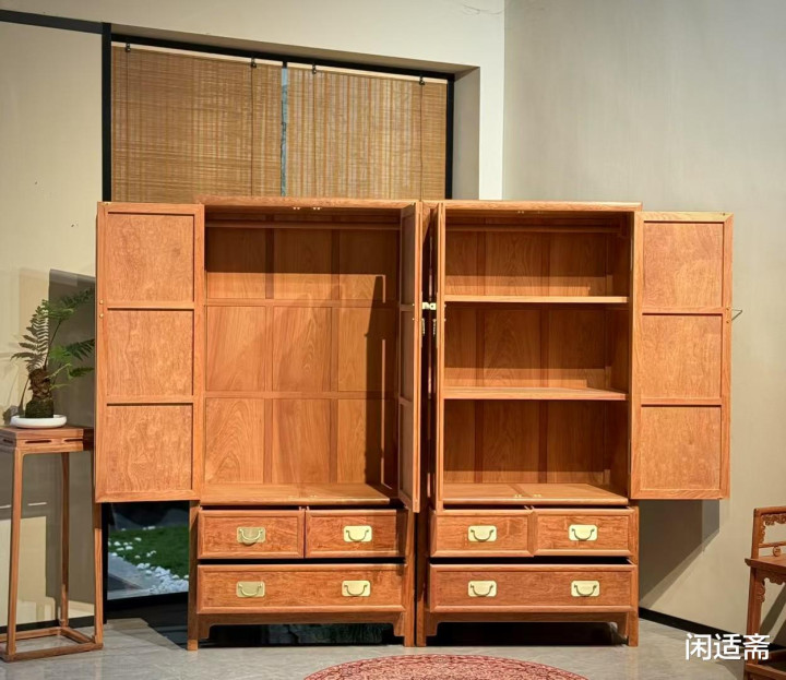 它不仅是实用的收纳大衣橱,更集材质之珍、工艺之巧、美学之韵于一体,既是日常家居的得力助手,亦是值得珍藏的红木雅器,承载着中式匠心与现代生活的融合之美。